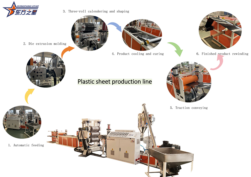 달력 및 냉각: 시트를 3롤 캘린더를 이용하여 조절된 온도에서 냉각시킨 후 수평을 맞추고 시트의 두께와 표면 마감을 결정합니다.