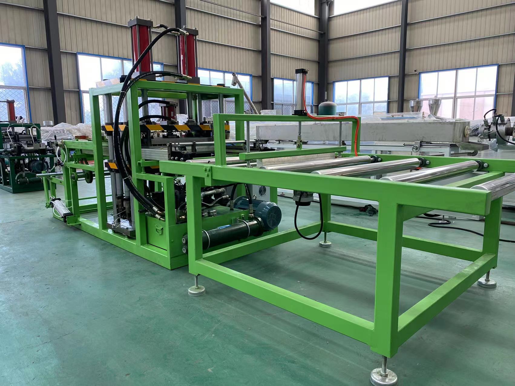 The first part produces root control sheets. Root control sheets can be made of PET, PVC, or PP. The specific raw material used depends on the local geographical environment and the customer's acceptance level. 청도동성소성기계유한공사 is a professional manufacturer of plastic sheet and board production equipment. Root control sheets are one of our main products. We match the appropriate root control sheet width to the desired sheet width. The production process includes plastic melting in an extruder, sheet blank production in a mold, solidification in a cooling bracket, and a stable traction speed from the traction machine, making the entire production process smoother. The sheet is then wound into the appropriate length according to the customer's needs.