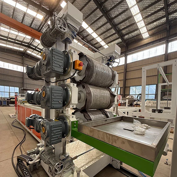TPU 시트 몰드는 크롬 도금, 거울 마감 T-다이 헤드를 사용합니다. 유동 경로 설계는 대칭적이고 매끄러우며 데드 스팟이 없어 균일한 용융 분포를 보장합니다. 다이 립 갭은 미세 조정이 가능하며(정확도 0.01mm) 0.1~5mm의 시트 두께를 수용합니다. TPU 시트 압출기에는 3개의 롤러 냉각 및 성형 장치가 장착되어 있습니다. 롤러 표면은 경면 연마되어 있으며 냉각수 온도는 항온 시스템에 의해 제어됩니다. 이를 통해 부드럽고 긁힘 없는 표면을 보장하면서 빠른 냉각 및 성형이 가능합니다. 시트의 평탄도 및 두께 공차(±0.03mm 이내)는 롤러 사이의 압력에 의해 제어됩니다.